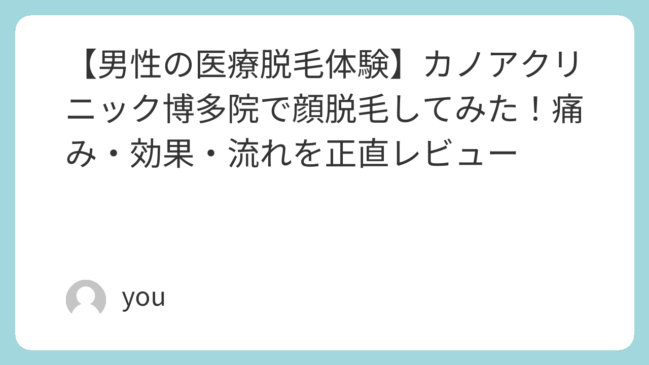 私も長年T字カミソリ派でしたが、青ヒゲや肌荒れが気になって、思い切って**医療脱毛専門の「カノアクリニック博多院」**で「顔脱毛(ヒゲ脱毛)」を始めました。