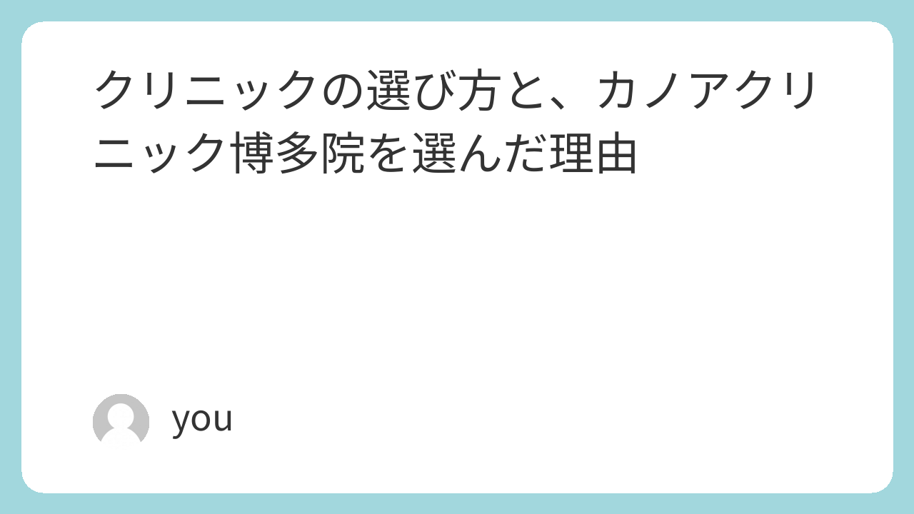 最終的に カノアクリニック博多院 を選んだ理由をお話しします。