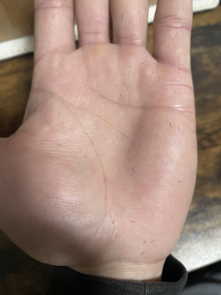 このように、化粧水や日焼け止めを塗った際に手のひらについてきます。