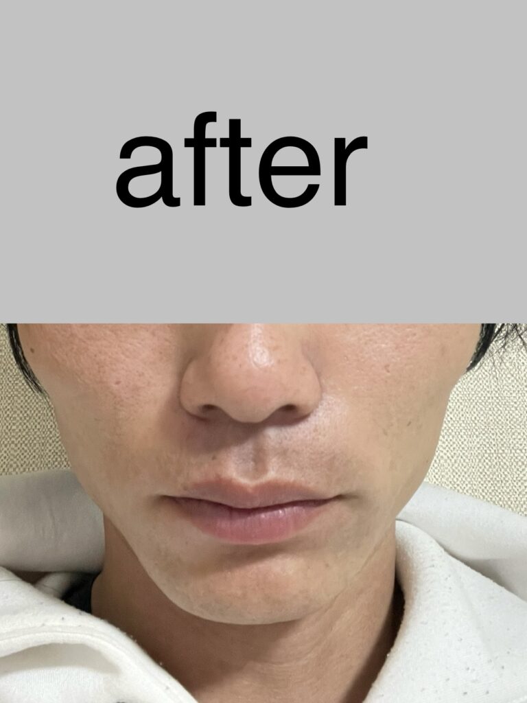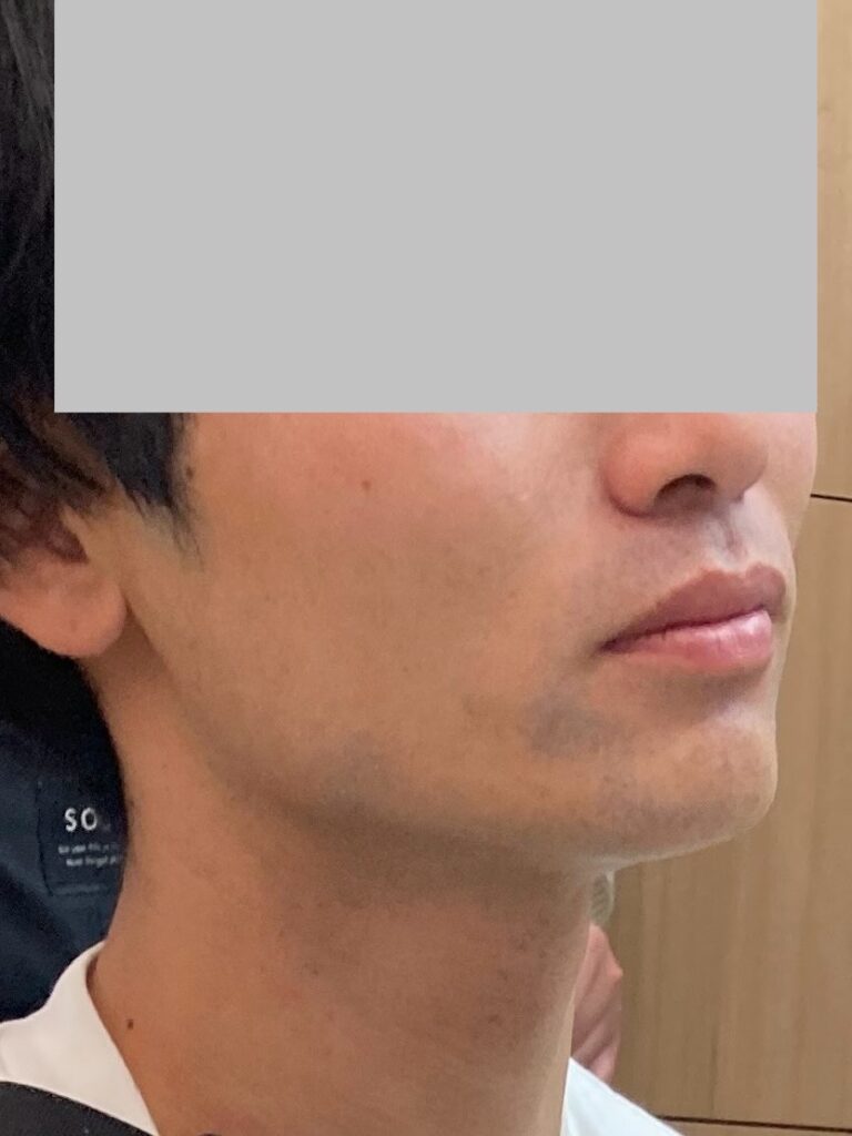 1回目の施術から約1ヶ月後、2回目に通いました。この間に、ヒゲの伸び方が少し遅くなったことを実感。特にほほと顎下の青ヒゲが薄くなり、剃った後のチクチク感も軽減されました。写真で比較すると、明らかに青みが減ってきているのが分かります。