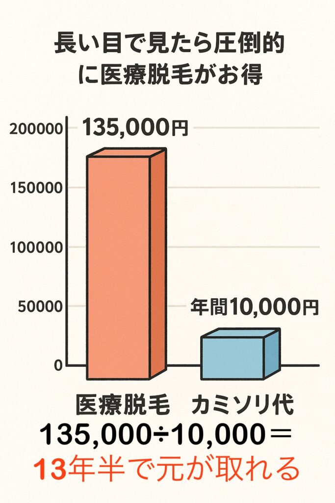 「医療脱毛は高い」と思われがちですが、長期的に見るとカミソリやシェーバー、替刃のコストが不要になります。