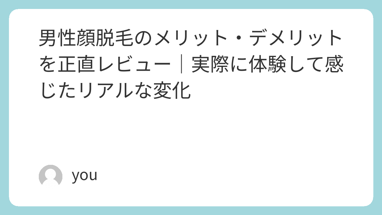 今回はその体験をもとに、男性の顔脱毛のメリットとデメリットを正直にレビューします。これから始めようか迷っている方の参考になれば嬉しいです。
