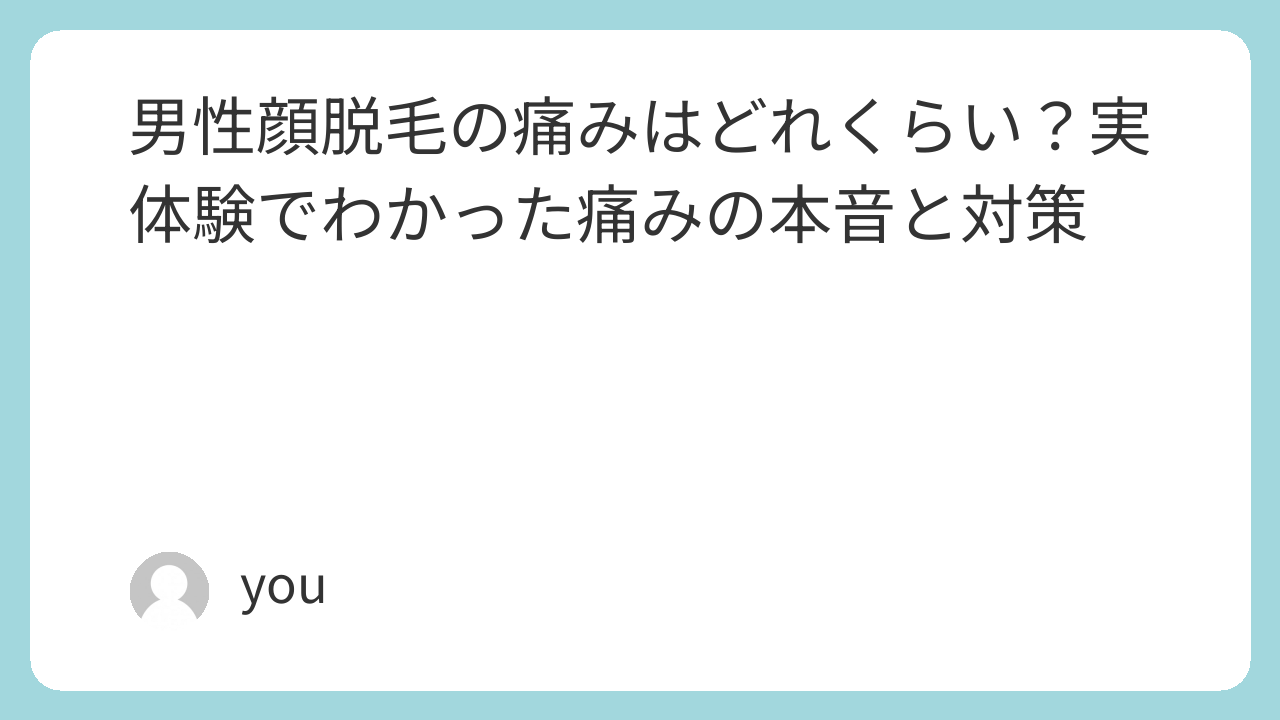 今回は、実際に医療脱毛に通っている体験をもとに、男性顔脱毛の痛みのリアルな感覚と痛み対策について詳しくまとめます。